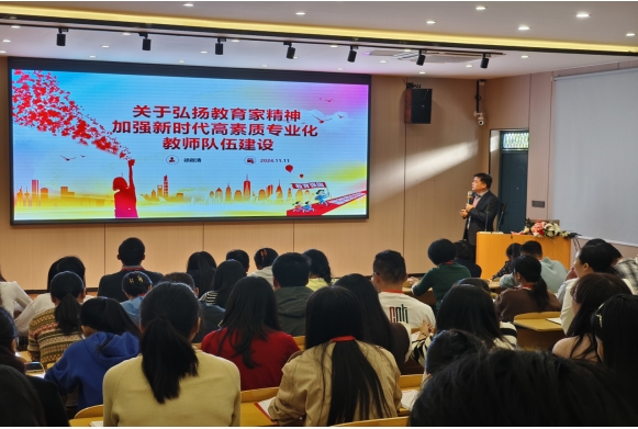 为深入贯彻党的教育方针,积极响应《中共中央 国务院关于弘扬教育家精神加强新时代高素质专业化教师队伍建设的意见》(以下简称《意见》)号召, 11月11日,我校在学术报告厅举办了第五期题为《关于弘扬教育家精神加强新时代高素质专业化教师队伍建设》的银杏论坛,本次论坛由学校党支部书记徐啟清担任主讲,围绕《意见》出台的主要背景、总体要求、提出的重要举措以及全文学习进行了一次全面而深入的集中宣贯。