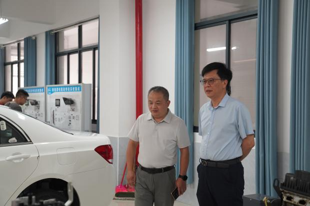 座谈会结束后,学校领导陪同晏勇一行实地参观了校园文化建设、科技楼各专业实训室及校史馆。详细介绍了学校各专业的实训设备配置和我校的发展历程与办学成就。