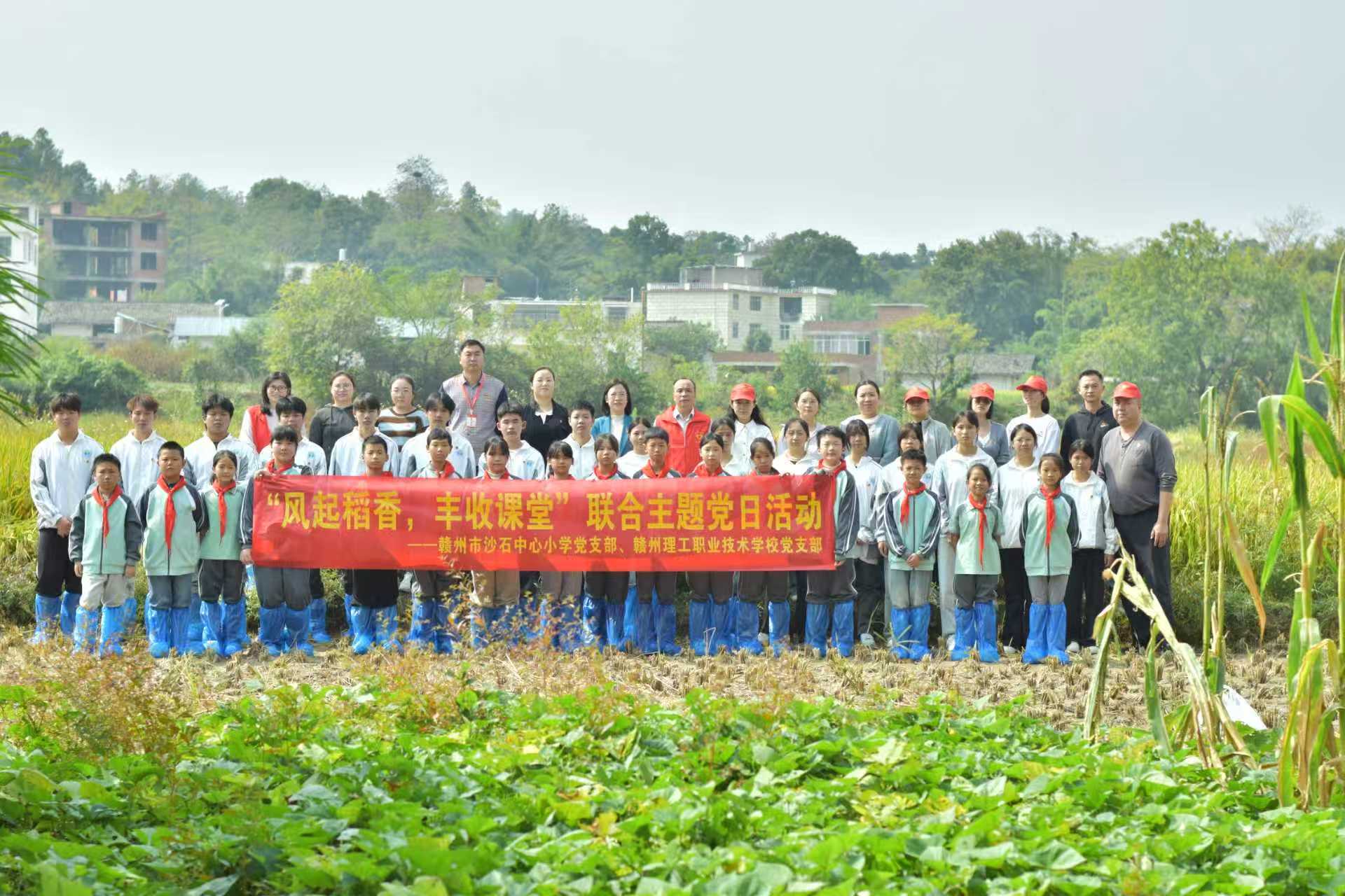 金秋时节,稻浪滚滚。10月27日上午,赣州理工职业技术学校党支部书记杨宏瑜带领学校部分党员、团员代表,携手党建结对帮扶学校章贡区沙石中心小学部分师生,一同前往结对帮扶村——章贡区沙石镇新圩村,开展“风起稻香,丰收课堂”联合主题党日活动。活动中,一堂别开生面的“田梗上的思政课”让在场师生深受教育与启发。
