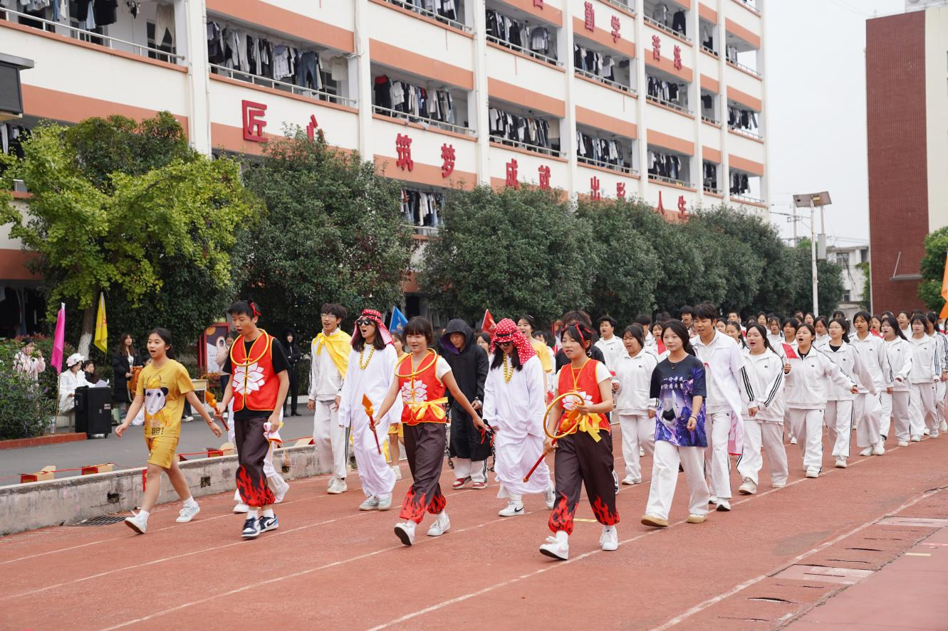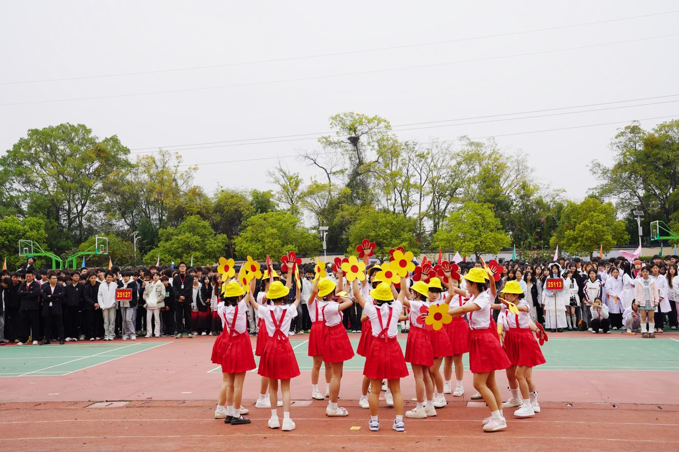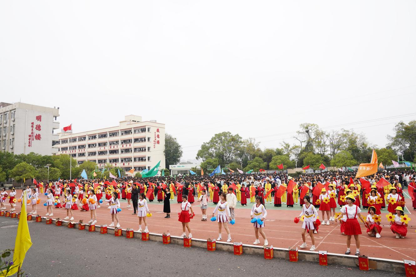 开幕式团体节目表演精彩纷呈,将气氛推向高潮。啦啦操《青春正燃》活力满满,武术《男儿当自强》刚劲有力,情景舞蹈《奇妙的朋友》温馨创意,集体旗舞《精忠报国》气势磅礴。最后,全体师生共同唱响校歌《梦想从这里启航》,熟悉的旋律寄托着对学校的深情与对未来的憧憬。