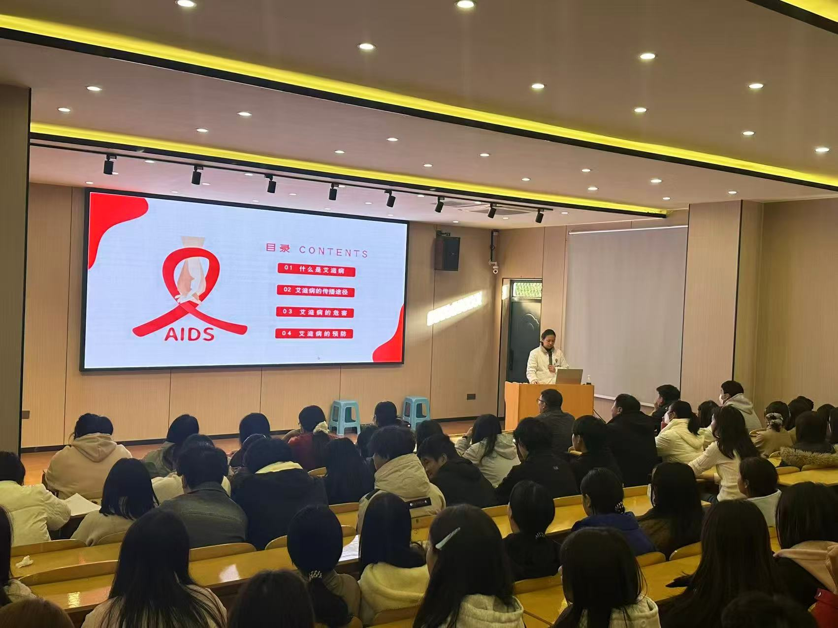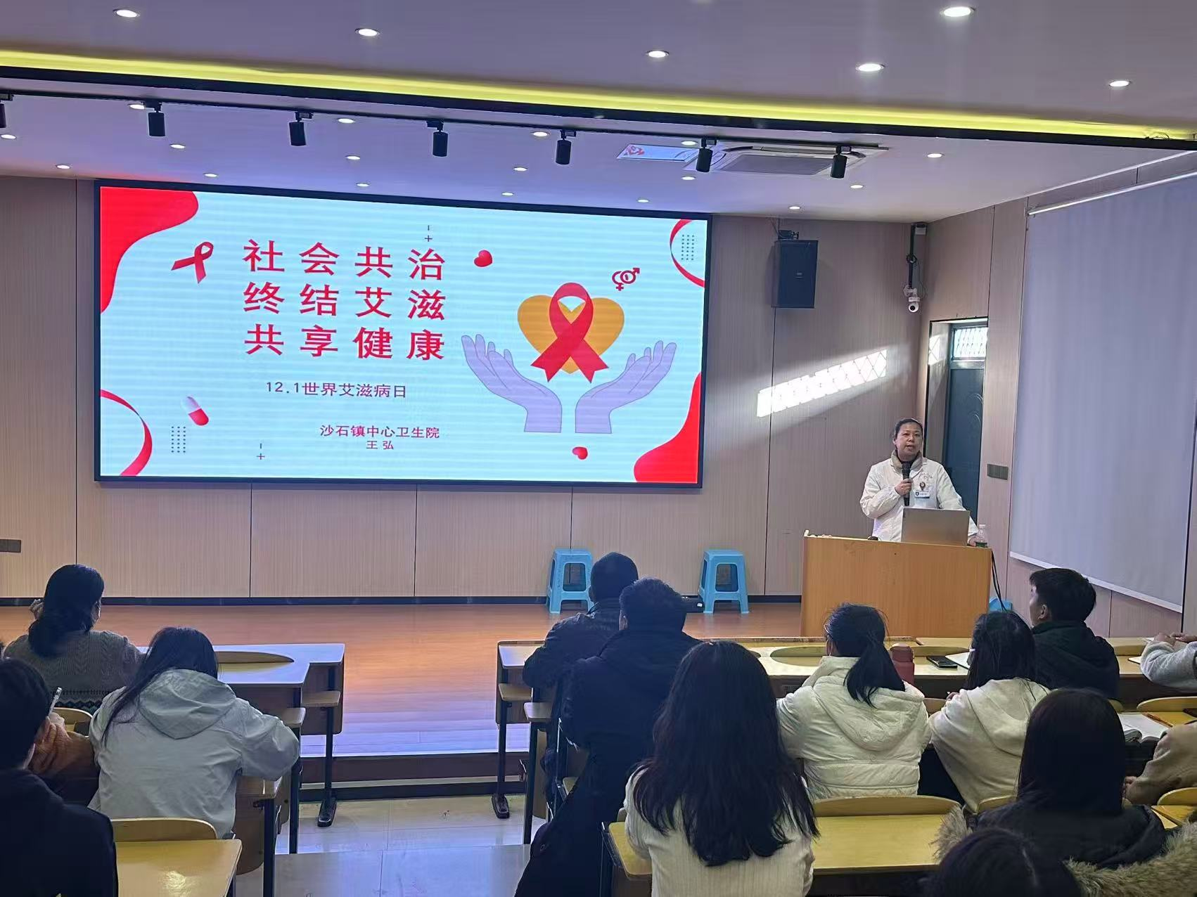 在第38个“世界艾滋病日”来临之际,为响应“社会共治、守正创新、终结艾滋”的年度主题,切实守护青少年身心健康,筑牢校园健康防护屏障,近日,我校特邀沙石卫生院王弘医生走进校园,开展预防艾滋病专题讲座,200余名师生聆听了这场实用且深刻的健康科普课。