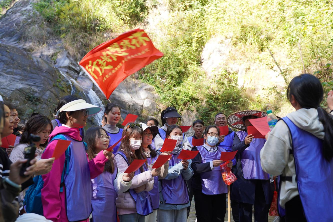 为传承红色基因,凝聚团队向心力,进一步厚植教职工爱党爱国的深厚家国情怀,11月29日,我校组织全校教职工前往上犹县犹崇红军古驿道开展行走的思政课暨红色研学团建活动。沿着先辈的足迹前行,从先辈的奋斗历程中汲取精神力量,并将其转化为教学工作中的思政感染力,坚定在新时代永远跟党走的理想信念。学校董事长姚学林受邀出席、校长黄远胜、校领导杨宏瑜、叶翔、徐东、陈辰升、林玲、姚啸参加活动,校领导徐啟清作出发前的动员讲话。