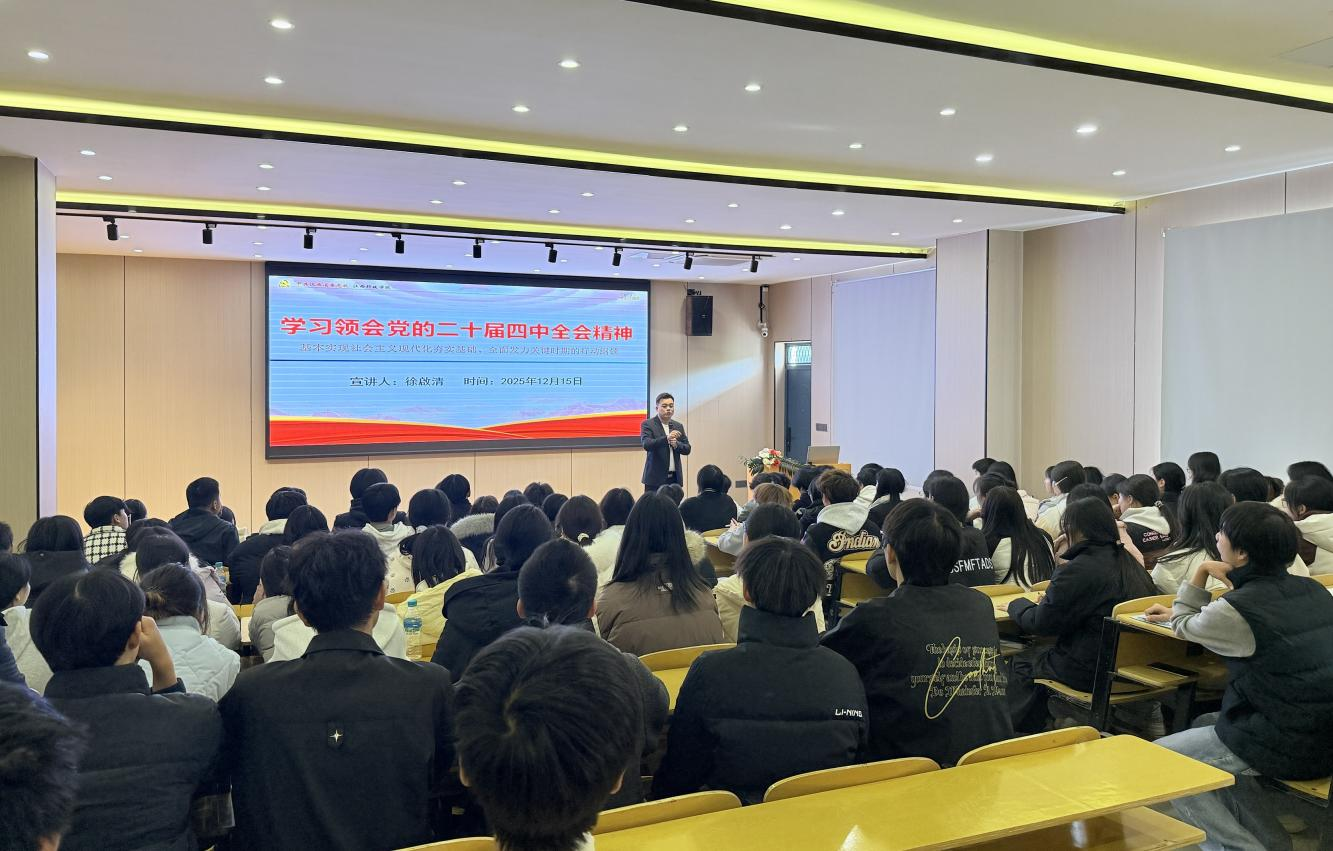 (通讯员:凌培红) 12月15日下午,赣州理工学校博学楼学术报告厅内座无虚席,学校领导徐啟清以“学习领会党的二十届四中全会精神”为题,为2025年秋季学期全体入团积极分子讲授专题党课。此次党课聚焦“十五五”规划核心要义,重点从战略形势与战略目标、战略原则与战略部署、战略保障三个维度展开深度解读,引导青年学子精准把握时代发展脉搏。