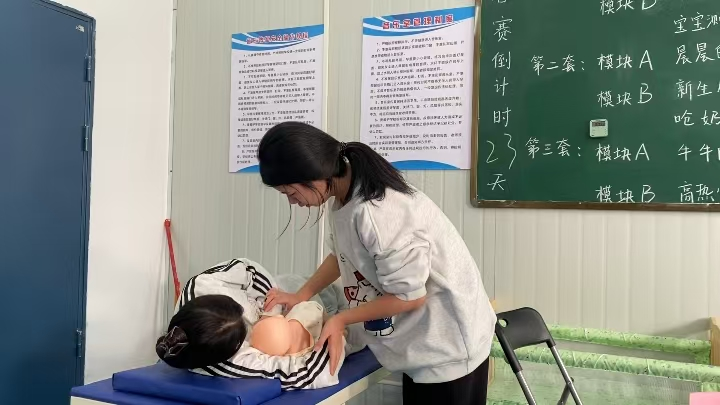 母婴照护团队:凌怡婷、卢玉婷——母婴照护项目省赛二等奖。他们凭借扎实的理论基础和娴熟的实操技能,在省级赛场脱颖而出,尤其在新生儿抚触、产妇护理等环节展现出极高的专业素养。备赛过程中,她们注重细节打磨,累计完成模拟实操训练超500次。