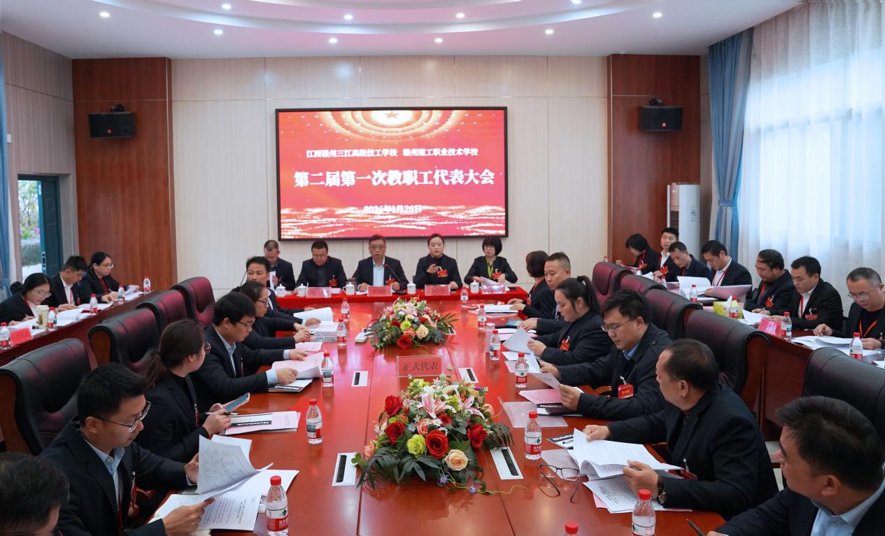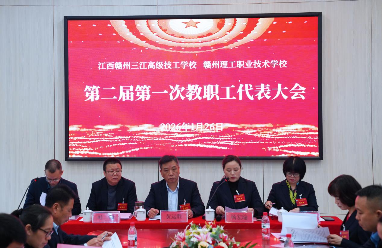 (通讯员:凌培红)1月26日上午8:30,赣州理工职业技术学校第二届第一次教职工代表大会在学校第三会议室隆重召开。本次大会正式代表根据1月19日教职工代表选举大会民主选举。正式代表39人、列席代表2人,大家齐聚一堂,共商学校发展大计、共绘育人发展蓝图。会议由杨宏瑜主持,校长黄远胜、副校长(工会主席)叶翔、副校长陈辰升、行政人事部主任姚皖林在主席台就座。校领导徐啟清、林玲、徐东、姚啸作为正式代表出席会议。