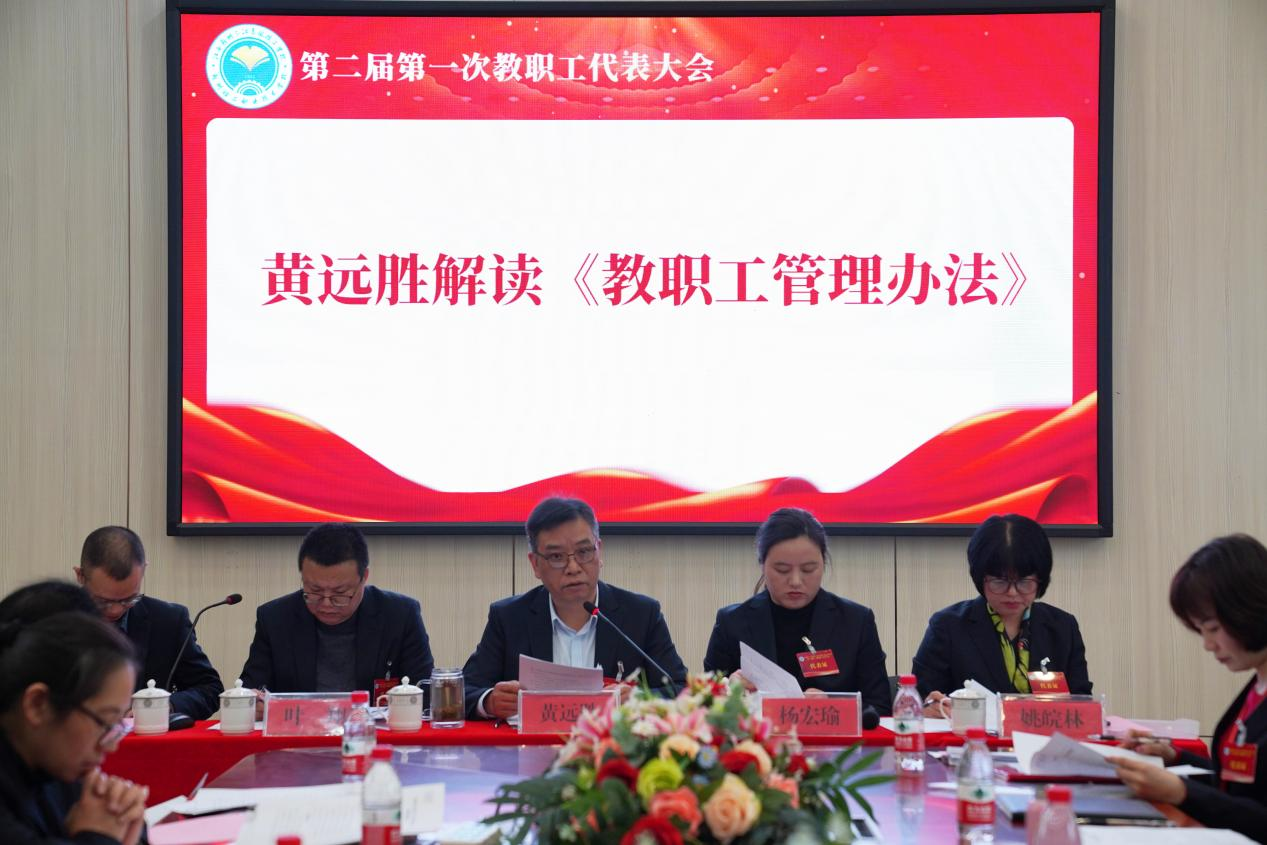 叶翔致开幕词,他指出,教职工代表大会是学校民主管理、民主监督的核心载体,是教职工参与学校治理、维护自身权益的重要平台,希望全体代表以高度责任感履职尽责,积极建言献策,为学校高质量发展注入动能。