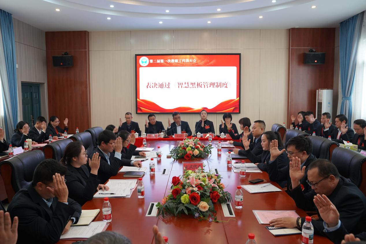 经充分审议,大会依次以举手表决形式全票通过《教职工管理办法》《教职工奖励实施方案》《智慧黑板管理制度》《教职工考勤管理办法》及《第二届第一次教职工代表大会工作报告》。