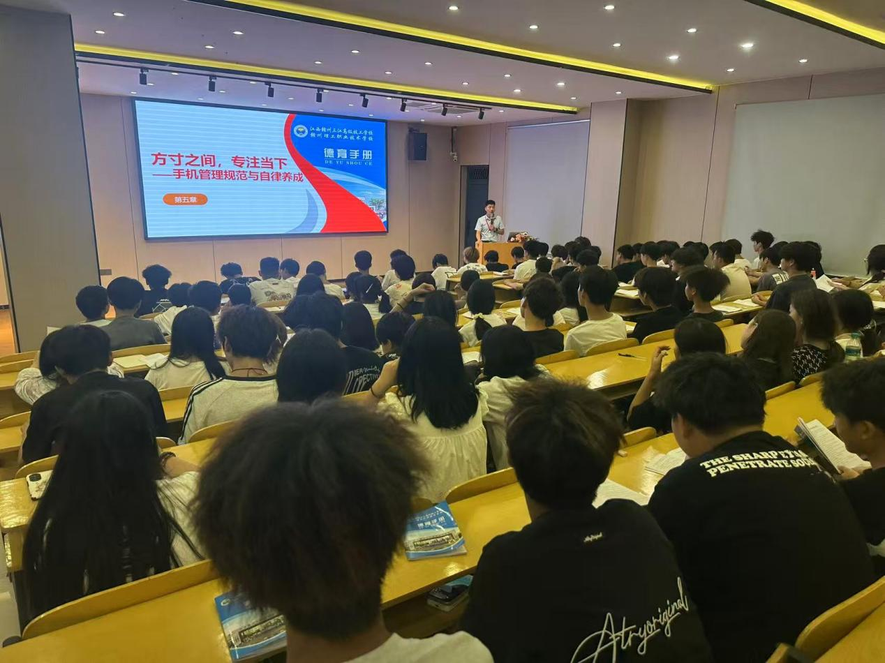动员大会后,系列专题培训活动有序开展。学工处主任钟庚宏先后带来两场培训:第一场以“校纪严明 违纪必处—争做合格中职生”为题,围绕校纪校规的核心内容,结合典型案例,清晰阐释了违纪行为的界定与处理办法,引导学生树立规则意识;第二场培训以“方寸之间 专注当下——手机管理规范与自律养成”为题,聚焦校园手机管理难题,从规范要求与自律培养两方面入手,帮助学生合理使用手机,提升自我管理能力。