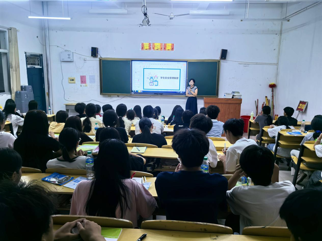 综治办主任王奕以“校园安全不缺位,平安成长不掉线——学习安全管理制度”为主题,系统讲解了校园消防安全、人身安全、网络安全等方面的管理制度,强化了学生的安全防范意识。