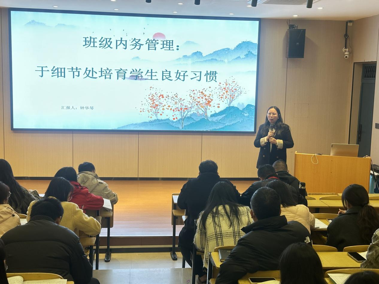 为深耕班级管理实践,筑牢养成教育根基,推动班主任队伍专业化成长,我校“杏林讲坛”系列活动聚焦班级内务管理核心议题,特邀钟华琴老师开展《班级内务管理:从细节处培育学生良好习惯》专题分享,以“老师以身作则”为核心,传递“改变不如影响”的教育智慧,全体班主任参与学习交流。