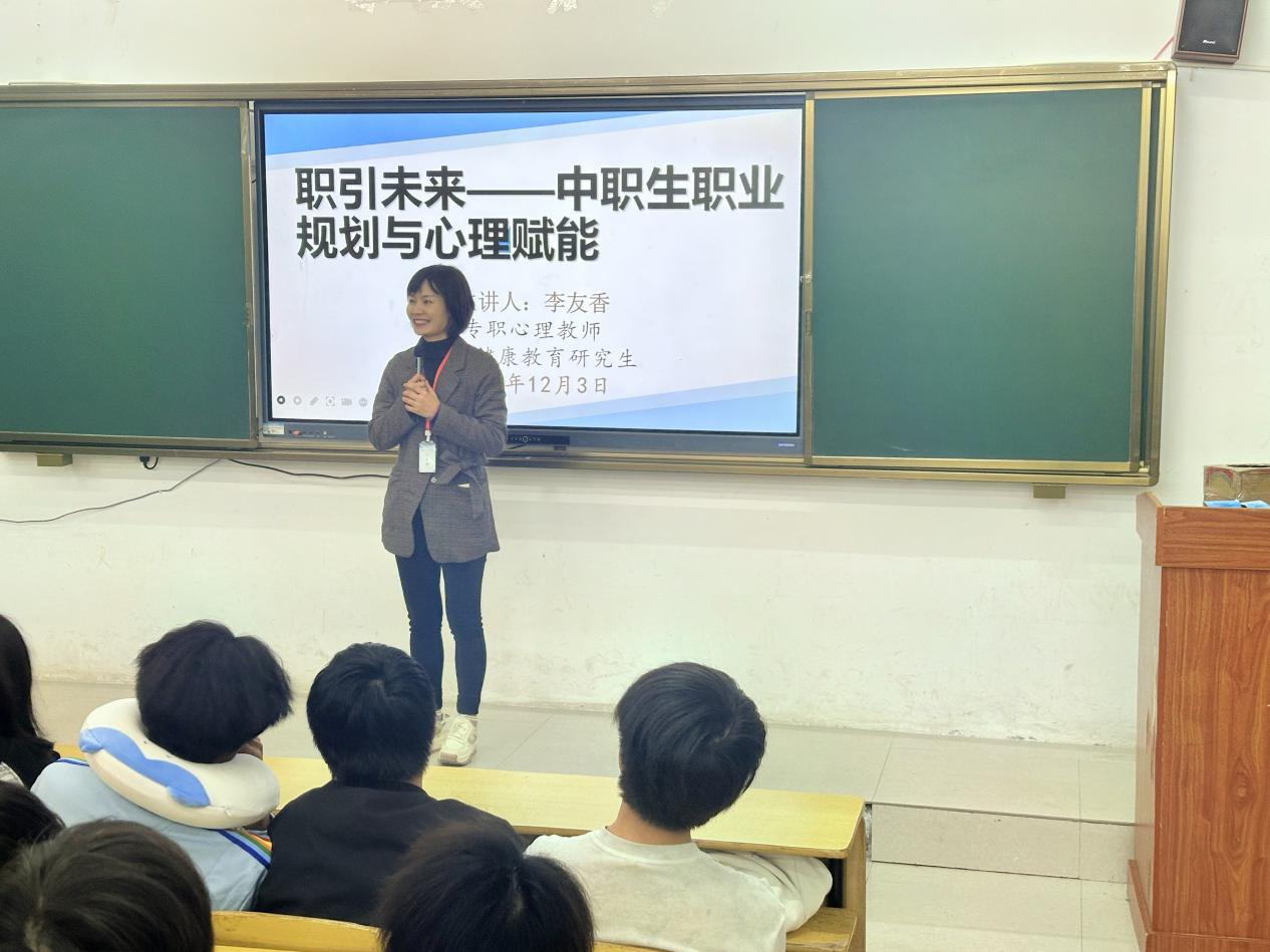 (通讯员:钟庚宏)为帮助学生明晰职业发展方向,提升心理健康素养,我校于12月3日晚特开展了“职引未来—职业规划与心理赋能”专题讲座。本次讲座由学校心理健康老师李友香主讲,200余名学生积极参与,现场氛围热烈。
